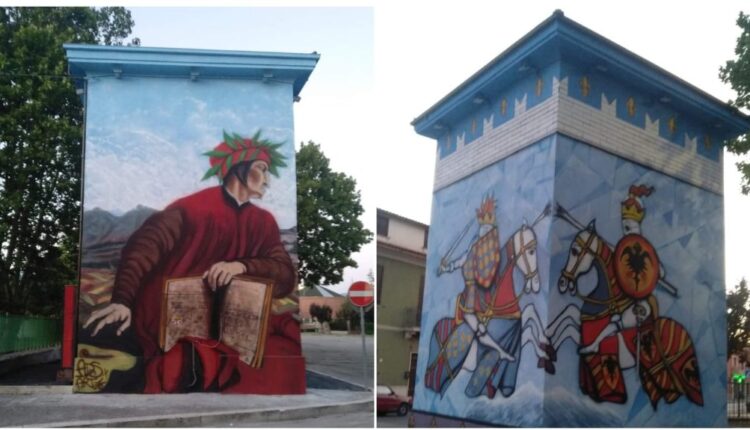 La collaborazione avuta con e-distribuzione, ha consentito la possibilità di realizzare, con la nuova forma d’arte moderna: la street art, un murales sulla cabina con immagini di scene di battaglia.