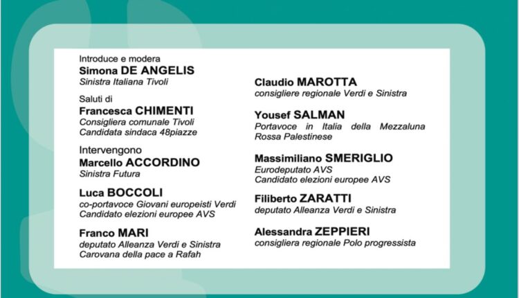 Vi aspettiamo martedì 23 aprile per discuterne insieme con Simona de Angelis, Francesca Chimenti, Marcello, Accordino, Luca Boccoli, Franco Mari, Claudio Maratta, Yousef Salman, Massimiliano Smeriglio, Filiberto Zaratti e Alessandra Zeppieri.” dichiarano dal coordinamento tiburtino di AVS.