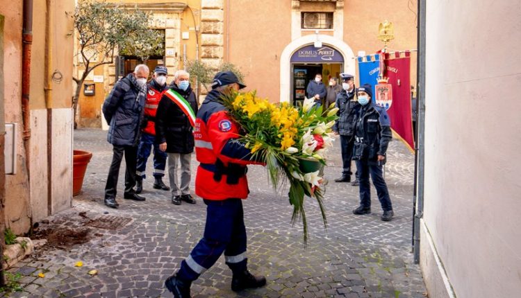 Tivoli – Il 27 gennaio del 1945 le truppe dell’armata rossa liberarono il campo di concentramento di Auschwitz: è il giorno scelto dall’Onu per ricordare lo sterminio di sei milioni di persone, quasi tutti ebrei, ma anche polacchi, rom, sinti, prigionieri di guerra sovietici, testimoni di Geova, disabili, omosessuali, “nemici” politici della Germania di Hitler. Questa mattina il sindaco di Tivoli Giuseppe Proietti ha ricordato l’orribile genocidio con un momento di raccoglimento davanti alla targa dell’ex ghetto tiburtino, in via dei Granai, dove non molto tempo fa ancora vivevano tiburtini ebrei. Una ricorrenza celebrata quest’anno con la deposizione di un cuscino di fiori, senza eventi, concerti, dibattiti su uno dei momenti più tragici della storia dell’umanità, e senza la partecipazione dei cittadini e di altre autorità per evitare il più possibile raggruppamenti di persone rischiosi per il contagio da Sars-Cov-2, ma non meno sentita dalla comunità tiburtina e dall’amministrazione comunale. Presente il gonfalone del Comune di Tivoli.
