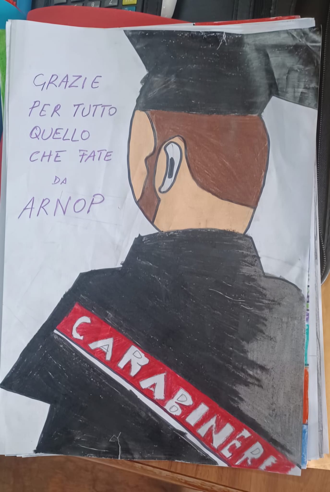 Gli studenti della classe 4ª B hanno preparato disegni e messaggi di ringraziamento, esposti nell’aula destinata alle operazioni elettorali. I lavori, realizzati nei giorni precedenti, hanno colpito i Carabinieri per la spontaneità e l’affetto mostrato verso l’Arma.
