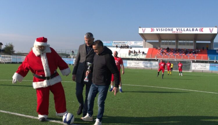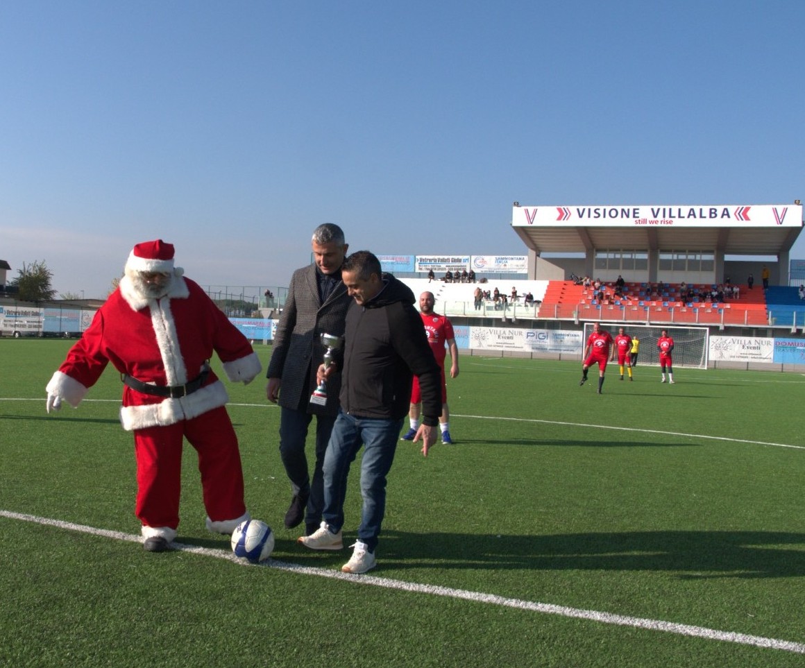A dare il calcio d’inizio il Sindaco Mauro Lombardo, un rappresentante della famiglia e Babbo Natale.