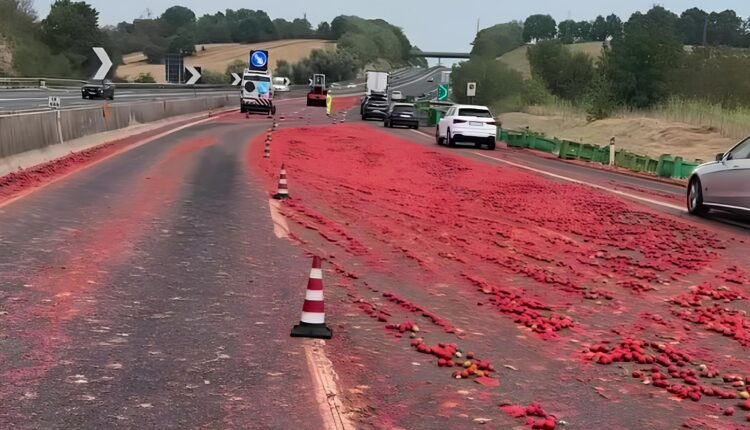 Anagni – Suilla A1 Milano-Napoli, nel tratto compreso tra Colleferro e Anagni in direzione di Napoli sono oltre cinque i km di coda a causa della perdita di carico da parte di un camion al km 598, costituito da pomodori. Stando ad una prima ricostruzione dei fatti, si sarebbe aperto accidentalmente e non ancora per note cause, il portellone posteriore di contenimento, cosicchè i pomodori in gran quantità si sono riversati sull’asfalto tingendolo di rosso. Gli automobilisti al seguito sono riusciti a frenare in tempo evitando cosi di impanarsi nei pomodori con il rischio di scivolamento delle ruole e tamponamenti a catena. Attualmente sul posto sono in corso lavori di rimozione e pulizia, ma ci vuole del tempo.