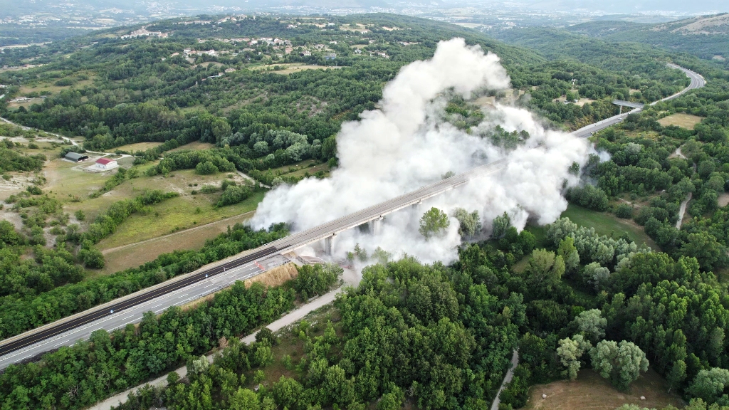 L’operazione di abbattimento controllato, la prima di questo genere sulla A24, si inserisce nel piano di messa in sicurezza antisismica dei viadotti delle autostrade A24 e A25, avviata lo scorso anno dalla concessionaria Strada dei Parchi con lo smontaggio e la completa ricostruzione delle carreggiate ovest di ben sei viadotti. Lavori di ricostruzione e adeguamento antisismico che proseguiranno nei prossimi mesi su altri viadotti della tratta fra gli Svincoli di Tornimparte e L’Aquila Ovest, con il fine di mettere in sicurezza l’intera tratta e quindi il collegamento della città di L’Aquila con la direttrice Roma – Pescara.
