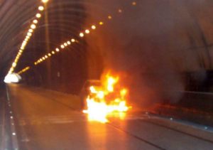 A24, auto in fiamme alla galleria di Roviano. Bloccato il traffico tra Vicovaro e Carsoli