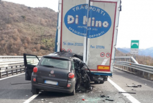 L’auto, una Fiat 500L, è andata completamente distrutta nell’impatto contro il tir. La Polizia Stradale sta lavorando alla ricostruzione della dinamica del sinistro, che non è ancora chiara.