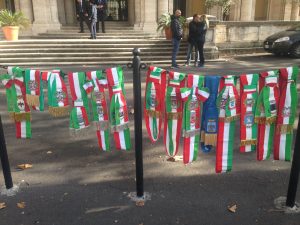 Roma – Una immagine che è destinata ad entrare nella storia quella a corredo dell’articolo. E’ la protesta dei sindaci laziali ed abruzzesi che questa mattina recatisi presso il Ministero delle Infrastrutture per il caso A24 si sono visti rifiutare il previsto incontro con il Ministro S.E. Rev.Ma Danilo Toninelli. Una indignazione che ha fatto sbottare i sindaci, i quali si sono tolti la fascia in massa lasciandole appese davanti alla sede Ministeriale. La delegazione dei primi cittadini in rappresentanza di tutti i colleghi laziali ed abruzzesi è giunta come d’accordo presso il Ministero al fine di fare il “punto” sul tema delle tariffe e su altri aspetti riguardanti Strada dei Parchi. I sindaci sono basiti, e i cittadini pure. Non aggiungiamo altro poichè l’immagine si commenta da sola.
