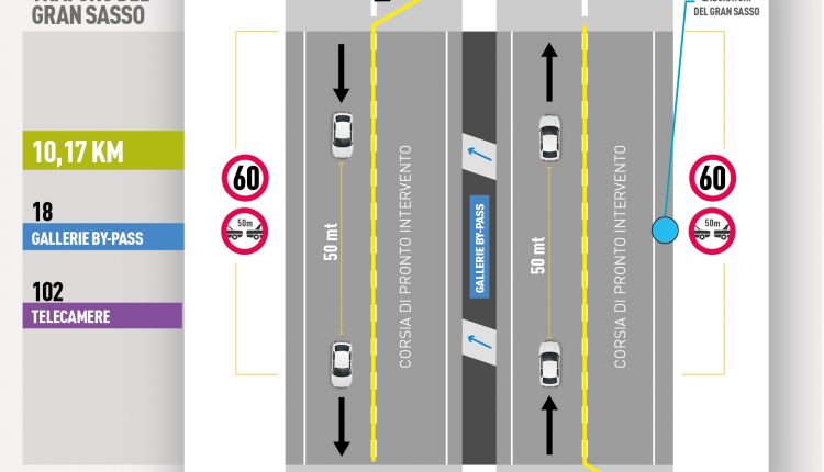- LA CORSIA DI SORPASSO della carreggiata est (direzione Teramo) sarà destinata ai mezzi tecnici di intervento in caso di incidente;