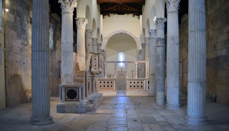 MASSA D’ALBE – La chiesa di San Pietro in Albe si erge sul colle di San Pietro, una delle tre colline che circondano Alba Fucens, la città romana fondata nel 304 a.C. ai piedi del monte Velino, presso l’antico lago del Fucino.