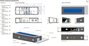 L’edificio destinato ai servizi ha una superfice pari a 110 metri quadrati e ospiterà la sala per il personale di guida e i servizi igienici.