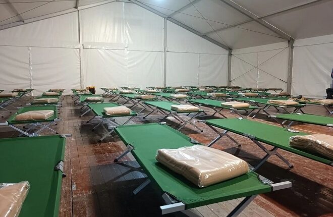 Roma  – Per ampliare l’offerta di accoglienza dei senza dimora, in questi mesi invernali, è stata allestita una nuova tensostruttura nel parcheggio antistante piazzale 12 ottobre 1942, in zona Ostiense.