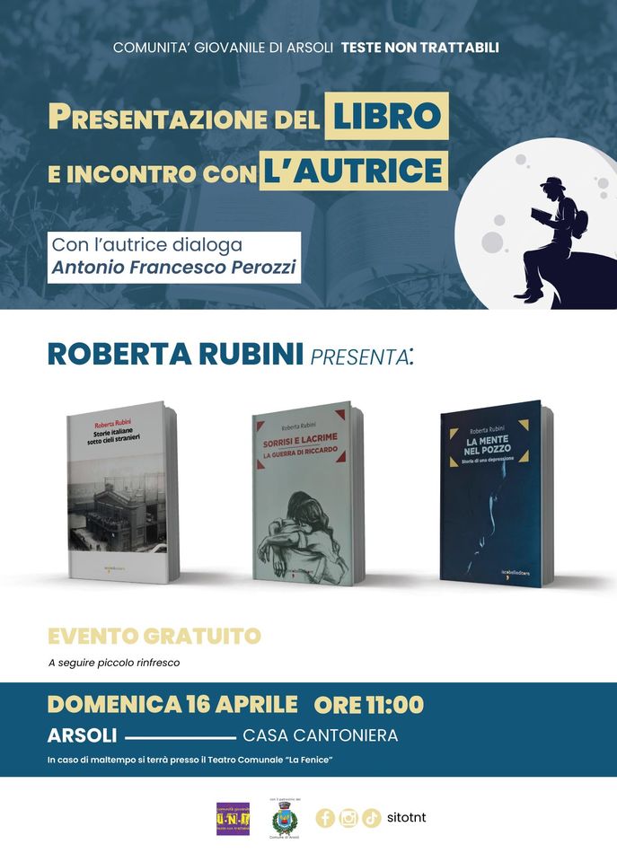ARSOLI – La comunità giovanile di Arsoli Teste Non Trattabili ha organizzato un suggestivo evento culturale presso la Casa Cantoniera di Arsoli. Saranno presentati i libri della scrittrice Roberta Rubini, che discuterà sui contenuti con il professore Antonio Francesco Perozzi. L’appuntamento è per Domenica 16 Aprile 2023 alle ore 11.00