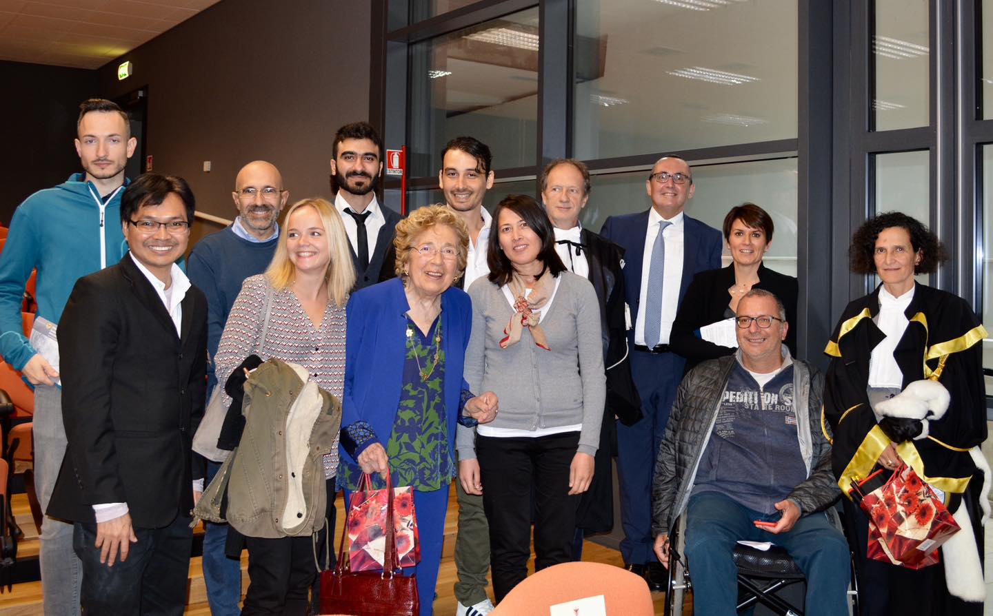 Nella foto al centro la professoressa Corradi durante una delle sue ultime visite a UnivAQ nel 2017 che la ricorda con affetto.