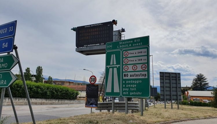 La concessionaria Strada dei Parchi comunica che, nell’ambito dei lavori di adeguamento sismico del Viadotto Valle Aterno, dalle ore 22:00 di mercoledì 27 e giovedì 28 luglio p.v. alle ore 06:00 dei giorni successivi, sarà disposta la chiusura al traffico della tratta autostradale compresa tra gli svincoli di L’Aquila Ovest e di Tornimparte in entrambe le direzioni.