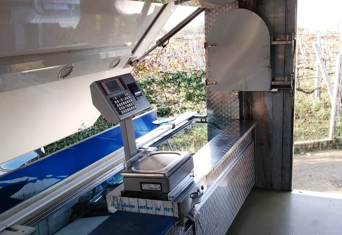 Amplissimo e comodo il corridoio del banco vendita che consente comodi e liberi movimenti anche per più addetti al lavoro in contemporanea. E’ dotato di frigo, vasche di cottura-friggitura e di ogni altro strumento per essere utilizzato immediatamente.