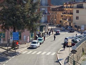 Affollata attesa esterna alle Poste di Carsoli, servono strisce di delimitazione. Diversi i controlli dei Carabinieri