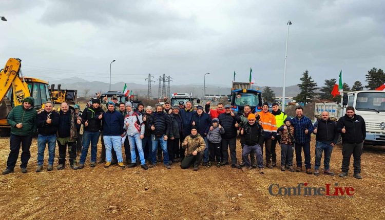 CARSOLI ORICOLA – Il maltempo non ha certo scoraggiato gli agricoltori della piana del Cavaliere che come da previsione si sono ritrovati questa mattina alle ore 9.00 nei pressi del casello autostradale A24 Carsoli Oricola. La loro azione, pacifica, molto ordinata e composta assume un alo valore simbolico di risposta del territorio alle agitazioni di settore che stanno riguardando tutta l’Italia. Norme sempre più stringenti e repressive della comunità europea rischiano di mandare in tilt aziende ed un settore produttivo agropastorale fondamentale per l’economia e per la sana alimentazione dell’uomo.