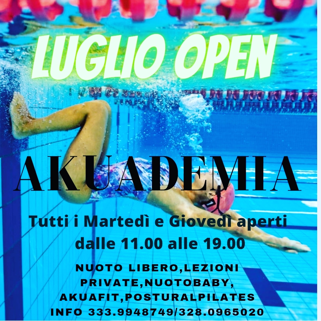 Ma è finita la scuola e non la possibilità di praticare piscina. Per tutto il mese di luglio 2022 infatti si potrà prenotare l’attività preferita il Martedì ed il giovedì alle 11 alle 19.00