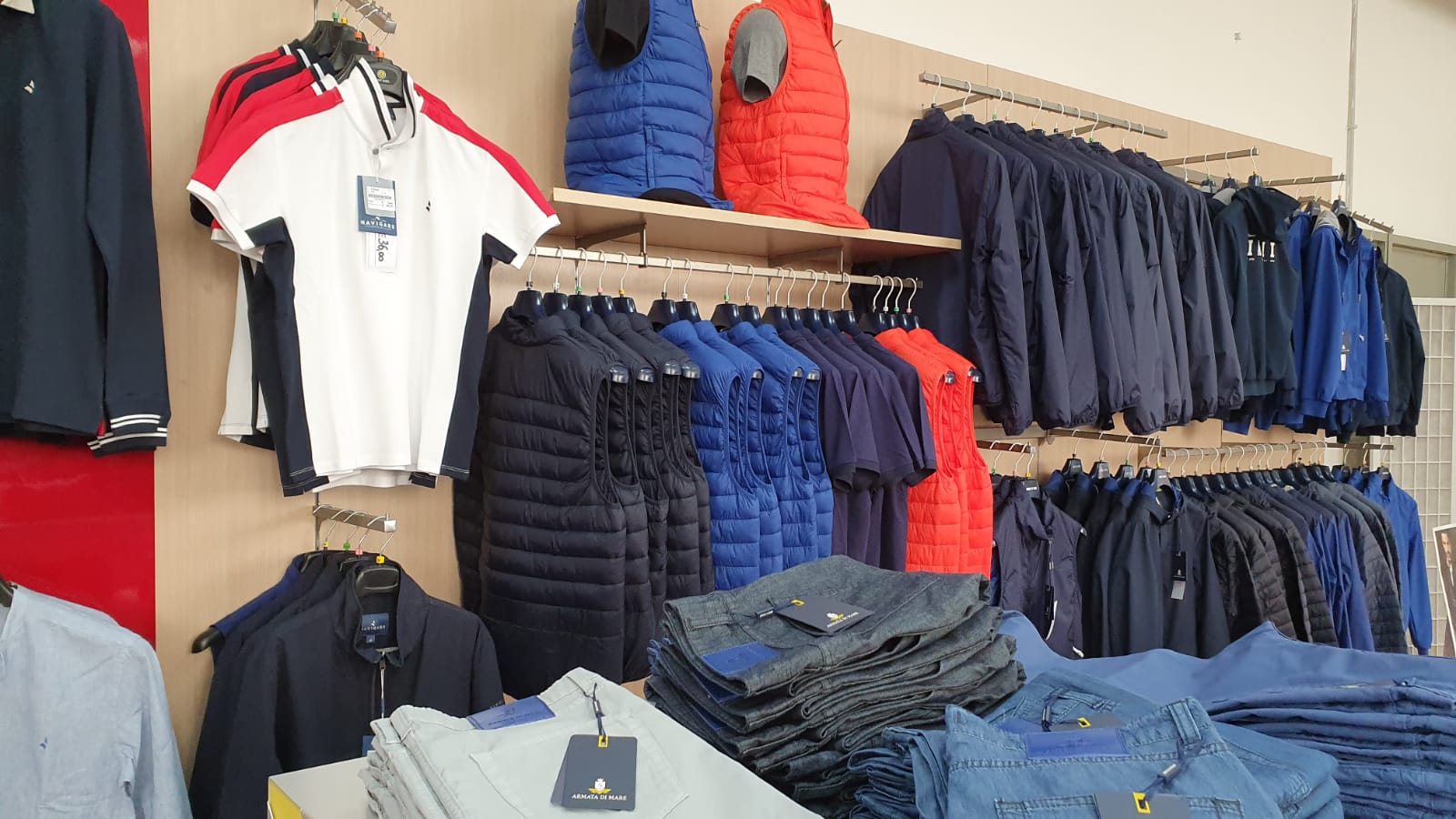 Il reparto “jeanseria“, con primi nuovi tessuti freschi e comoda portabilità conferiscono quel giusto tocco di unicità al vestire casual e sportivo.
