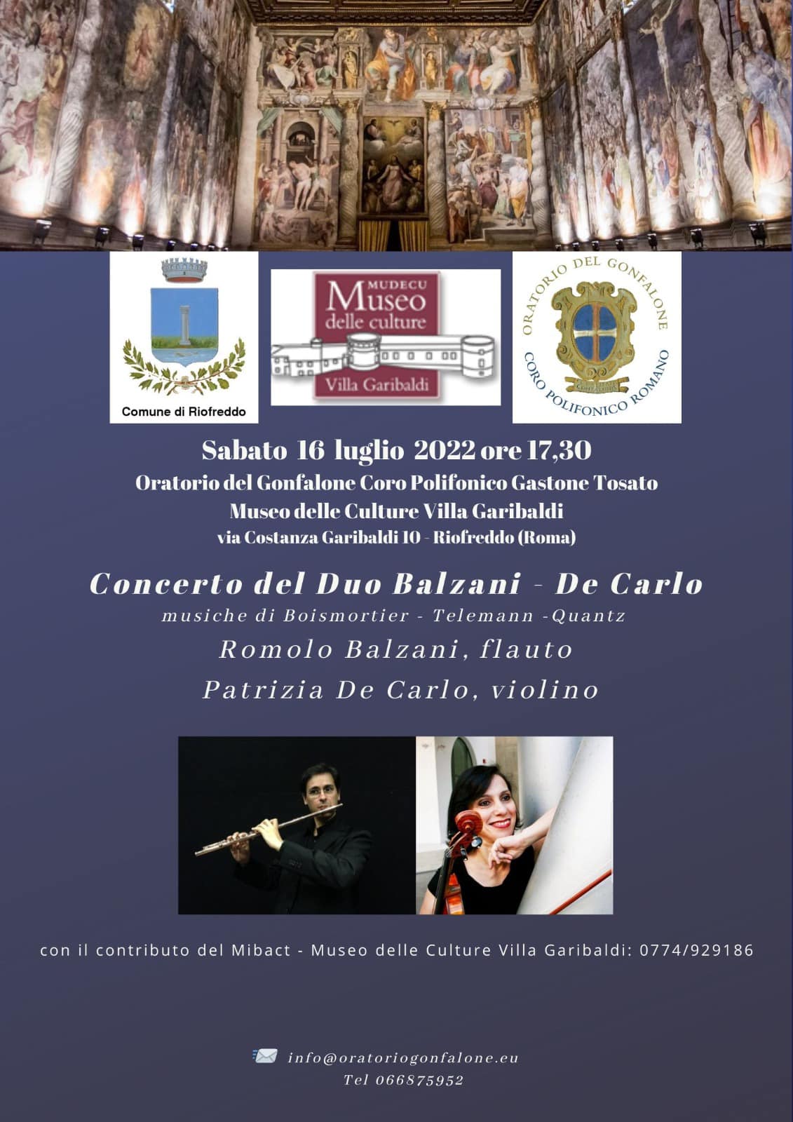 RIOFREDDO – In occasione del sessantesimo anniversario della scomparsa di Annita Italia Garibaldi,  è stato organizzato in grande stile il concerto del duo Balzani- De Carlo. L’appuntamento è per sabato 16 luglio 2022 alle ore 17.30.