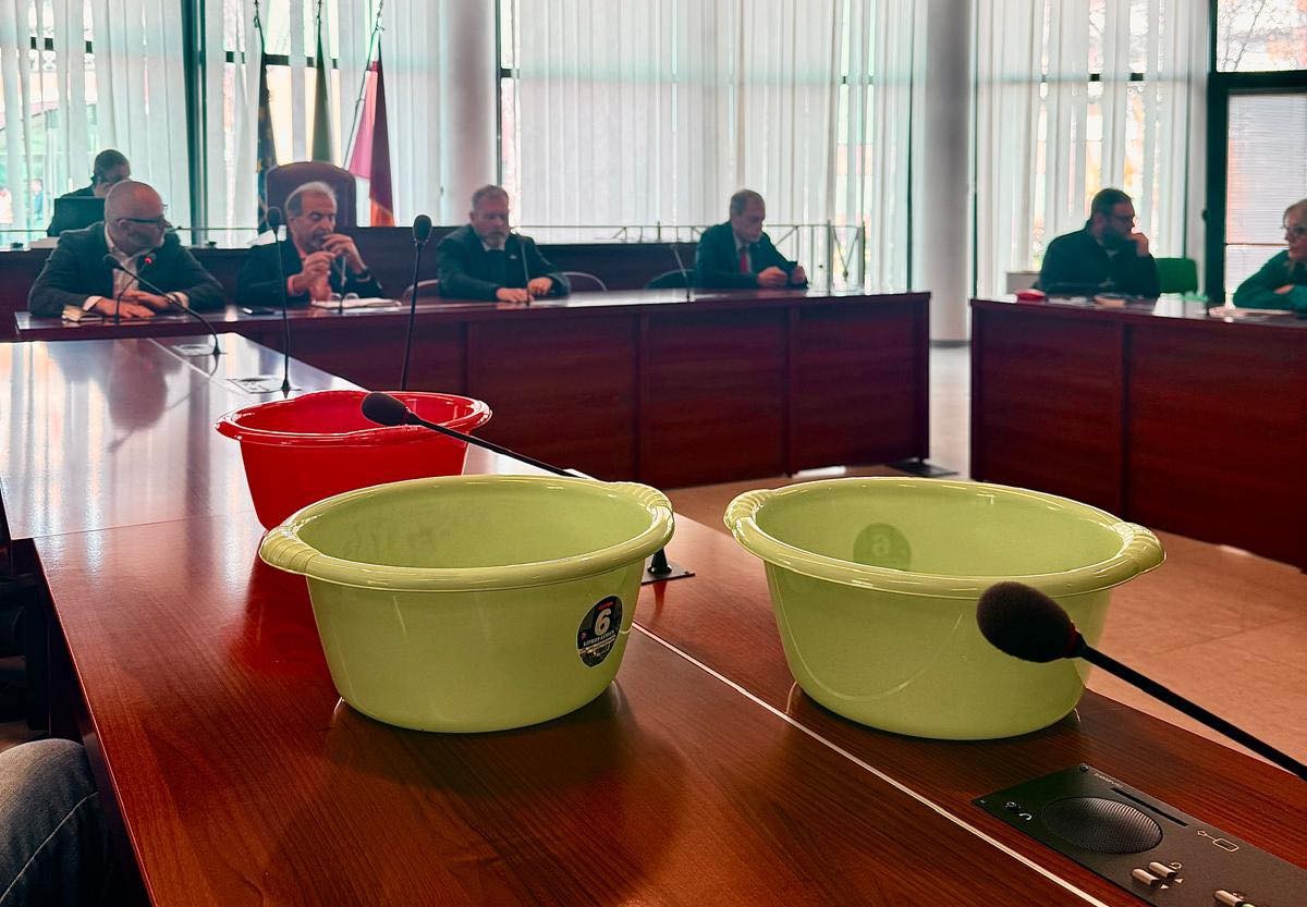 Durante l’incontro, sono state consegnate alcune bacinelle utilizzate dagli abitanti delle case popolari per raccogliere l’acqua piovana che filtra dai soffitti in questi giorni di maltempo. Un gesto concreto e fortemente evocativo, pensato per denunciare una situazione che, secondo i promotori della protesta, rende surreale il dibattito su elementi di arredo urbano come agorà, siepi o sistemazioni estetiche della piazza.