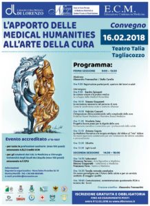 Redazione -Un interessante convegno è stato organizzato per il 16 febbraio 2018, promosso dalla Casa di Cura Di Lorenzo e dalla Casa di Cura Nova Salus di Trasacco. L’evento è inserito nel calendario degli eventi di formazione continua obbligatoria e tratterà il tema: “L’APPORTO DELLE MEDICAL HUMANITIES ALL’ARTE DELLA CURA”.