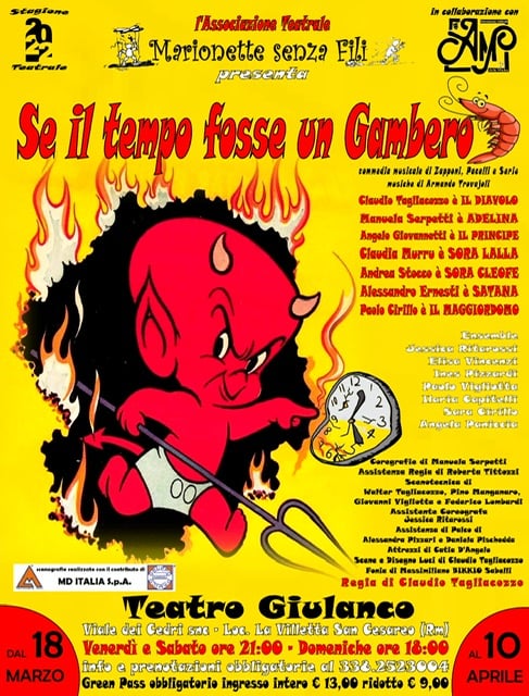 San Cesareo – Marionette senza Fili, la compagnia teatrale guidata dal Direttore artistico Claudio Tagliacozzo, torna in scena con il musical per tutta la famiglia “Se il tempo fosse un gambero”, a San Cesareo dal 18 marzo al 10 aprile (venerdì e sabato ore 21 e domenica ore 18).