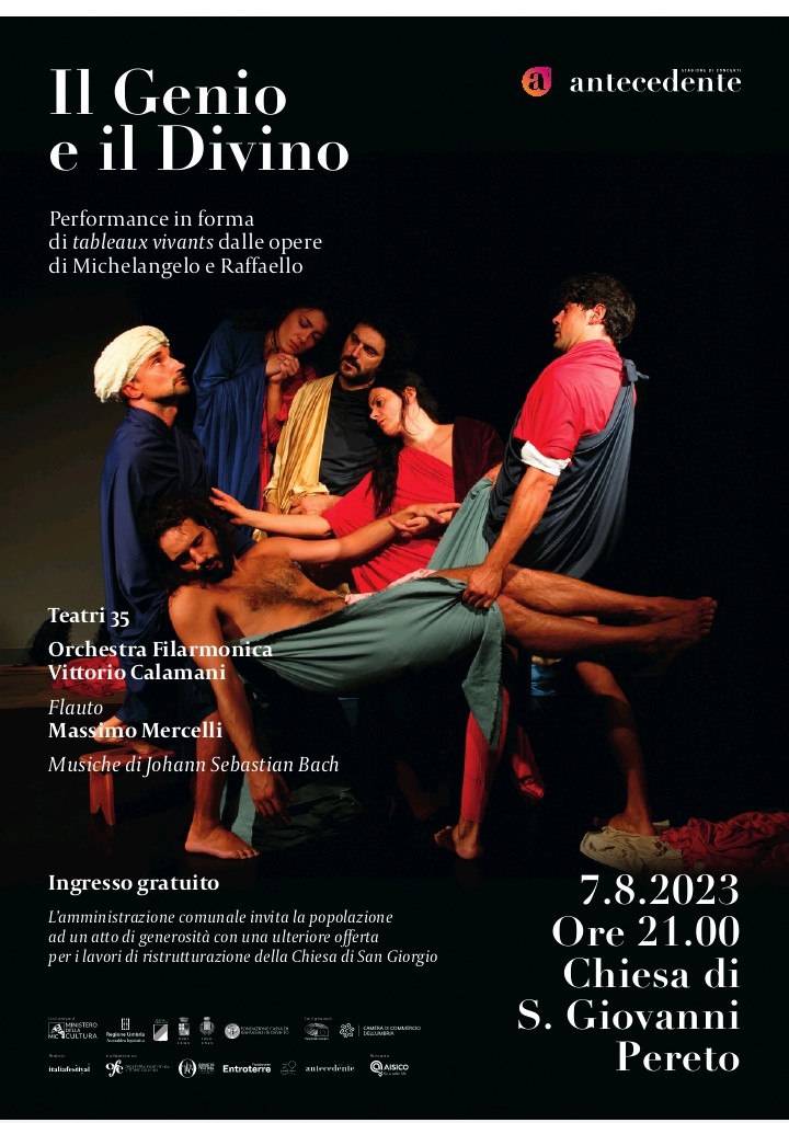 PERETO – Domani Lunedì 7 agosto alle ore 21 presso la chiesa di San Giovanni a Pereto si svolgerà lo spettacolo Il Genio e il Divino. Performance in forma di tableaux vivants dalle opere di Michelangelo e Raffaello.