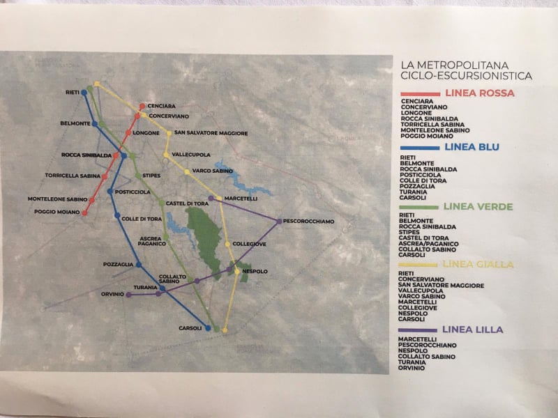 Quello della ciclovia della Riserva è un progetto che crea una connessione importante fra le stazioni ferroviarie di Rieti e di Carsoli e la rete dei sentieri, ippovie, ciclovie delle Vallate del Salto e del Turano. Un’integrazione del sistema territoriale delle due valli nel più ampio contesto delle ciclovie di interesse regionale e nazionale: ciclovia “Salaria”, i percorsi ciclabili dei cammini San Francesco e San Benedetto, in una interconnessione del sistema di mobilità dolce con le reti di trasporto pubblico.