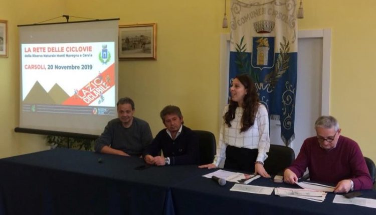 Carsoli – Si è svolta questa mattina Mercoledì 20 Novembre 2019 alle ore 11,00, presso la Sala Consiliare del Comune di Carsoli la conferenza stampa di presentazione del progetto “Rete delle Ciclovie della Riserva Naturale Monti Navegna e Cervia”. Unico nella provincia di Rieti e fra i primi classificati nella graduatoria regionale, il progetto rientra nel finanziamento complessivo di 16 milioni di euro stanziato dalla Regione Lazio per 500 km di nuove piste ciclabili. Il sindaco Velia Nazzarro ha fatto gli onori di casa accogliendo il presidente della riserva Naturale Monti Navegna e Cervia dott. Giuseppe Ricci. Presenti anche i sindaci di Colle di Tora (Pandolfi) e di Nespolo (Cavallari) nonchè altri primi cittadini dell’hinterland reatino e della valle del Turano. Si conta dunque di dare il via sin da ora al bando di gara e poi ci saranno 120 giorni per procedere alla ultimazione dei percorsi. Entro l’estate del 2020 dunque questo progetto sarà attivo ed operativo. Il tutto è stato illustrato con l’ausilio di slide che hanno fornito uno spaccato di grande interesse per un percorso ambientalistico che costituisce anche un input di rilancio sul fronte turistico-ricettivo.