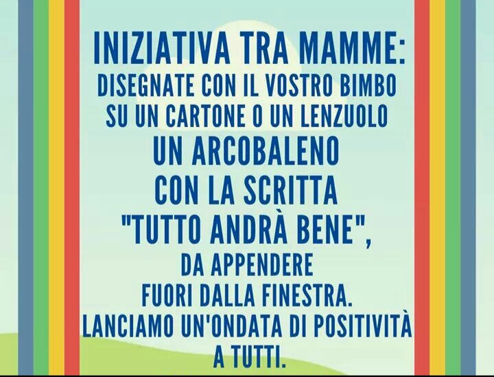 Al via l’iniziativa “Tutto andrà bene” con i colori dell’arcobaleno, i cartelloni da preparare in casa
