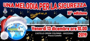 Redazione – C’è grande attesa ad Avezzano per l’undicesima edizione della kermesse natalizia più attesa dell’anno, Una Melodia per la Sicurezza. L’evento in grande stile ad Avezzano (Aq) presso la splendida cornice del Castello Orsini Colonna. Una manifestazione che si preannuncia ancora più ricca delle precedenti, quelle romane, che comunque hanno segnato un grande successo di pubblico presente e tanto divertimento per grandi e piccoli.