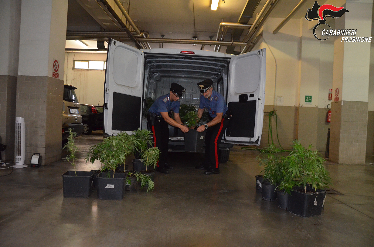 I Carabinieri notando il nervosismo dei predetti e sentendo provenire all’interno dello stabile un aroma riconducibile a sostanze stupefacenti, proseguivano la perquisizione anche ai locali cantinati ove trovavano una serra attiva adibita alla coltivazione di piante di cannabis indica. Venivano sequestrate più di cento piante con tutta la relativa attrezzatura usata per la coltivazione e le due persone tratte in arresto in flagranza di reato e come disposto dall’Autorità Giudiziaria, condotti presso distinte abitazione in regime di arresti domiciliari. Un’operazione che ha permesso di debellare sul nascere un traffico di sostanze stupefacenti che si sarebbe riversato sul mercato ciociaro.