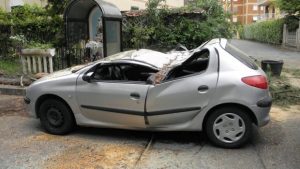 Tivoli – Non si placano le polemiche a Villa Adriana per il brusco risveglio avvenuto in via Lago di Garda nella mattinata di ieri.  Improvvisamente un enorme arbusto  è caduto in terra schiacciando una vettura parcheggiata a bordo strada. Fortuna ha voluto che in quel momento nessuno stesse passando per la strada. Il fatto, oltre al danno per la vettura distrutta, ha creato un vespaio sulla sicurezza degli alberi, che cadono come foglie al vento, in linea a quanto sta avvenendo nella capitale. Alcuni residenti nel quartiere fanno la voce grossa: “La circostanza fortuita ha voluto che non fosse morto nessuno, ma noi ci sentiamo lasciati all’abbandono, gli alberi vanno controllati e manutenuti ed invece tutto è  lasciato al caso”.