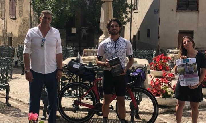 Colle di Tora – E’ stato accolto dal sindaco Beniamino Pandolfi e dal consigliere Veronica Mostarda il ciclista Alessandro Mucci che ha fatto tappa nella valle del Turano per il percorso iniziato ieri dalla Val di Comino. Un tour tutto in bici per sensibilizzare sugli aiuti per la ricerca sul cancro.