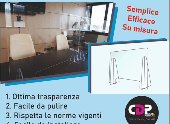 Carsoli – Alla Cdp Pubblicità di Carsoli arrivano le soluzioni per l’emergenza Covid 19. Sono disponibili le barriere parafiato protettive in plexyglass e con feritoia.