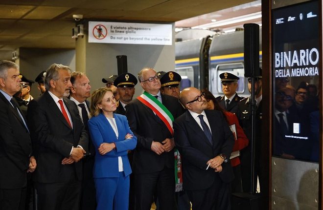 ROMA – Un totem multimediale al binario 1 della stazione Tiburtina di Roma ricorda le vittime della Shoah e gli oltre mille ebrei romani che il 18 ottobre 1943 furono deportati nel campo di concentramento di Auschwitz-Birkenau.