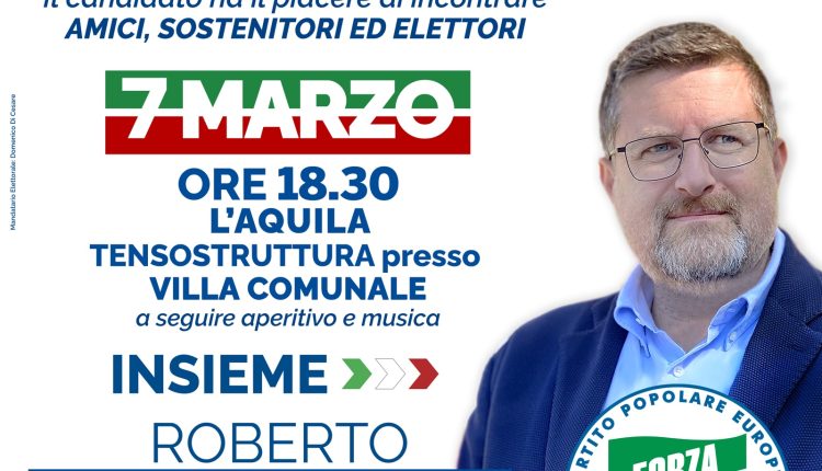 L’AQUILA – – Si terrà giovedì 7 marzo alle ore 18:30 nella tensostruttura allestita presso la Villa Comunale dell’Aquila, l’evento di chiusura della Campagna Elettorale di Roberto Santangelo, candidato alle elezioni del 10 marzo 2024 per Forza Italia.