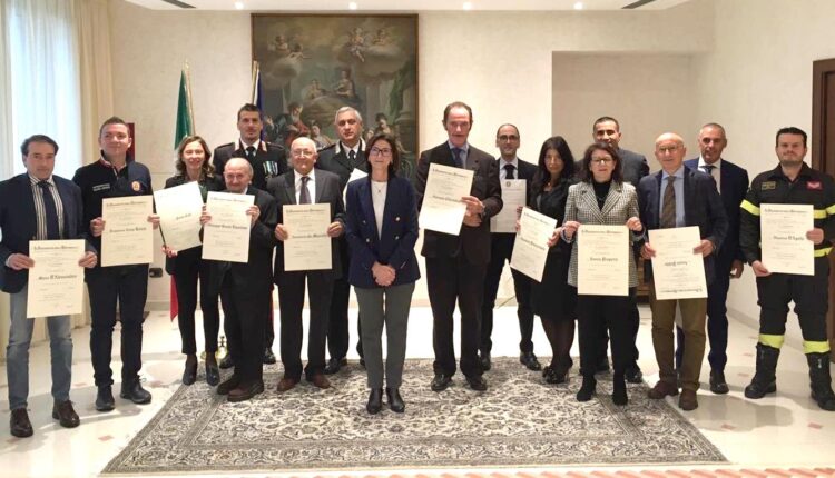 L’Aquila – Si è svolta oggi in Prefettura la Cerimonia di consegna dei Diplomi agli insigniti delle Onorificenze dell’Ordine “Al Merito della Repubblica Italiana, un riconoscimento destinato a ricompensare benemerenze acquisite nel campo delle lettere, delle arti, della economia e nel disimpegno di pubbliche cariche e di attività svolte a fini sociali, filantropici ed umanitari, nonché per lunghi e segnalati servizi nelle carriere civili e militari.