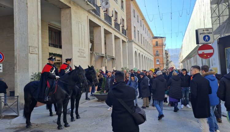 All’Aquila il fascino dei carabinieri a cavallo incanta il centro storico