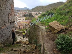 Carsoli – Probabilmente sono state le piogge incessanti di questi giorni che hanno provocato il cedimento di un grosso costone di roccia di tufo situato nella zona storica del borgo antico a Carsoli. L’allarme è stato dato poco fa alle autorità comunali, impegnate in un corteo processionale a Colli di Monte Bove. La Protezione Civile di Carsoli è tempestivamente intervenuta mettendo subito in sicurezza l’area interessata dal cedimento. Sul posto la delegata alla Protezione Civile Lorenza Muzi, ha coordinato unitamente ai Vigili del Fuoco le prime fasi di accertamento dei fatti. I vigili stessi e Polizia Locale, dopo aver ispezionato l’area procederanno ora a rimettere al Sindaco di Carsoli Velia Nazzarro una dettagliata relazione sulla natura degli interventi, tralaltro urgenti a quanto pare da mettere in atto. Fortunatamente nel momento del distacco nessun passante si è imbattuto nel crollo. L’area interessata comunque è solo di transito pedonale, ma restano anche gli interrogativi sulla zona sovrastante il punto di cedimento. Sicuramente verrà disposta con specifica ordinanza contigibile ed urgente la chiusura delle aree da mettere in sicurezza. C’è preoccupazione, inoltre, per la giornata di domani, in cui sono previste di nuovo intense precipitazioni.
