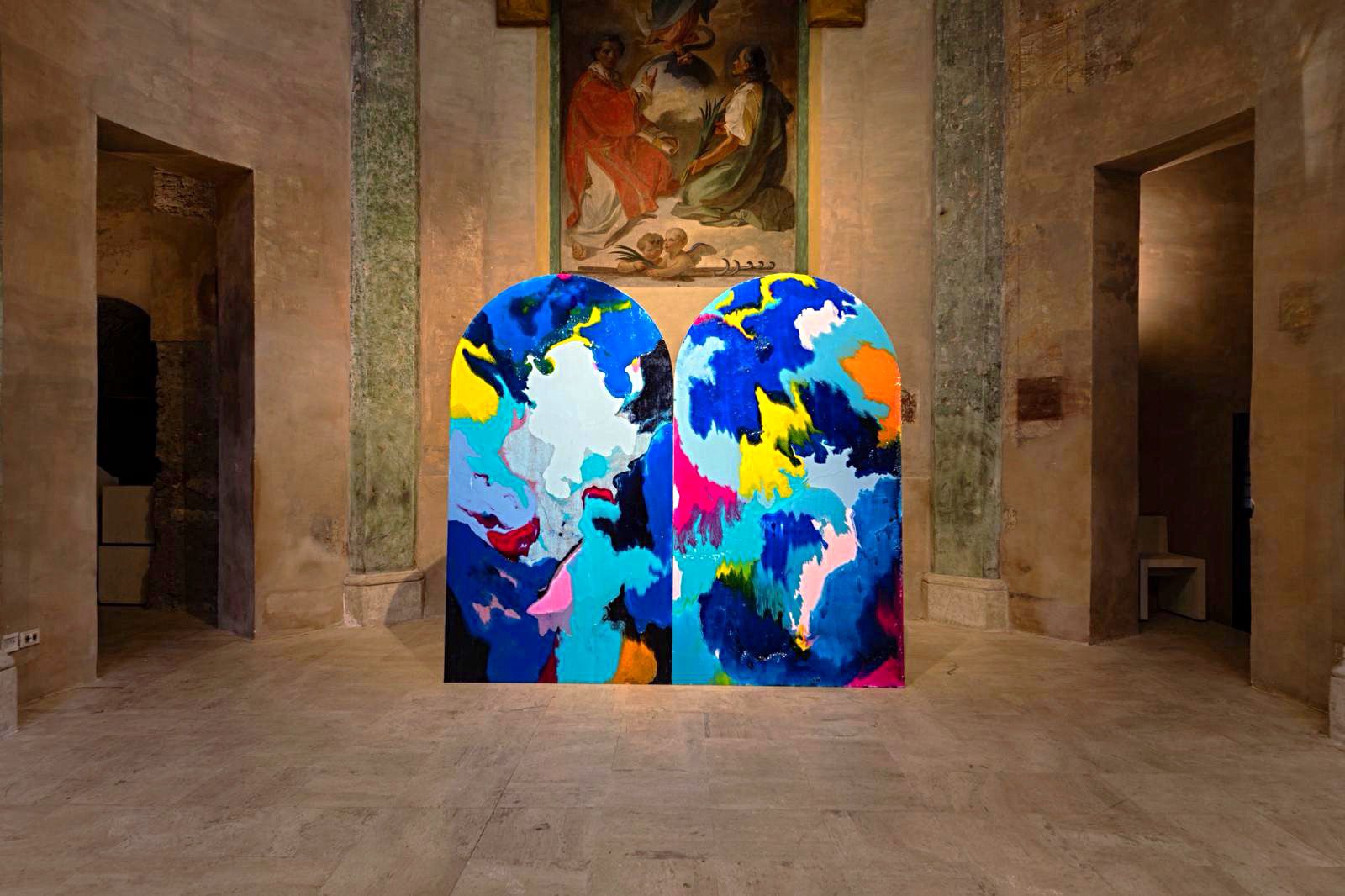 Le opere si intrecciano inoltre con le bellezze della Chiesa di San Vincenzo Martire a Tivoli, in un mondo sospeso tra luce e materia, storia e presente, con l’abside che accoglierà l’opera principale, da cui prende nome la mostra, fulcro dell’intera esposizione.