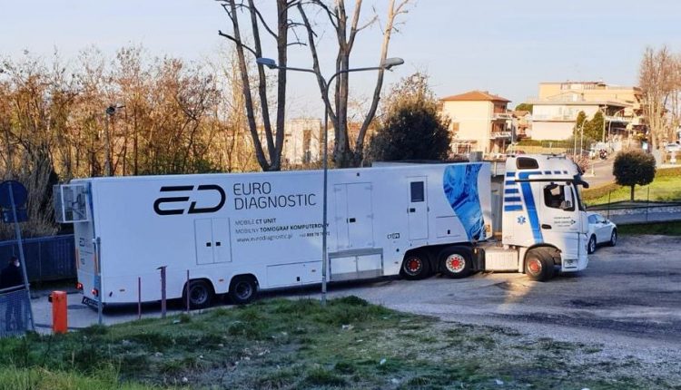 È arrivata nelle prime ore del mattino dall’Olanda, da questa mattina l’ospedale Coniugi Bernardini di Palestrina dispone di una TAC mobile tecnologicamente avanzata e montata su ruota con evidente elevato impatto tecnologico su una tecnologia che per sua natura è fissa. Incessante il lavoro dei tecnici e della struttura, instancabili.