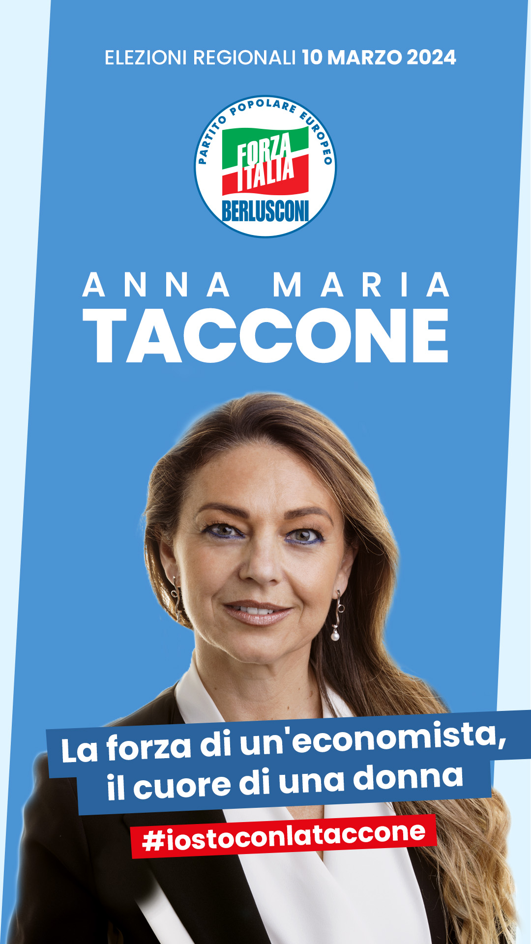 Uno slogan, il suo che racchiude competenza, passione ed umanità: “la forza di un’economista, il cuore di una donna”. La Taccone vanta un curriculum di prestigio, è dottore commercialista, docente universitaria presso la Luiss di Roma nelle materie di Pianificazione e controllo, già consigliere di amministrazione dell’Università “Tor Vergata” di Roma, e già presidente dell’Aciam.