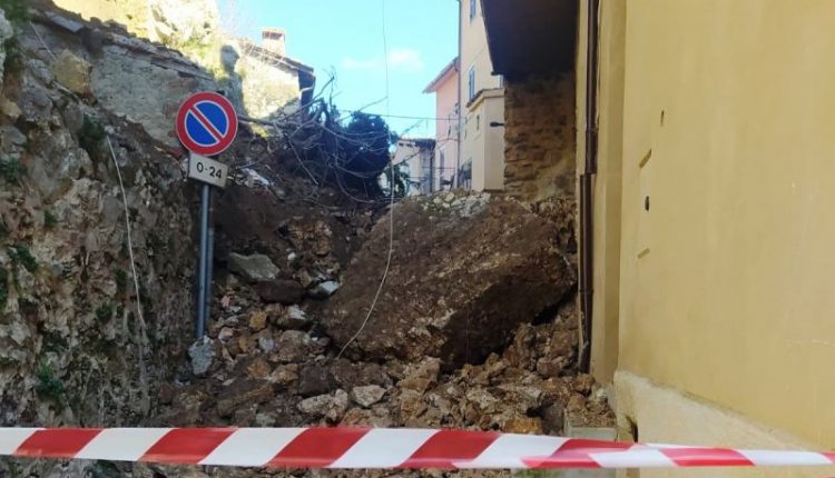 Anticoli Corrado, frana il muro del giardino Gaudenzi: interrotta strada comunale