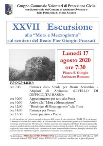 Arcinazzo Romano – Il Gruppo Comunale Volontari di Protezione Civile con il patrocinio del Comune di Arcinazzo Romano e della Parrocchia S. Maria Assunta organizza, lunedì 17 agosto, la XXVII escursione alla “Mora e Mezzogiorno” sul sentiero del Beato Pier Giorgio Frassati. Per partecipare, nel rispetto