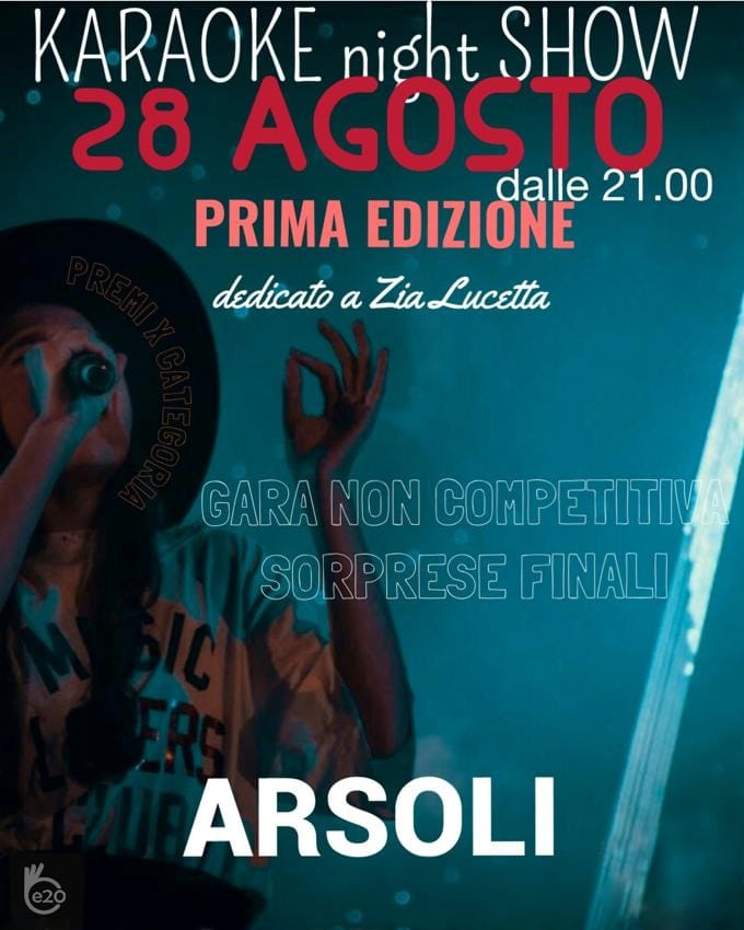 ARSOLI – Attesa per il divertimento dedicato a zia Lucetta. Il 28 agosto 2022 dalle ore 21 spazio alla gara non competitiva del Karaoke Night Show, tanta musica, cordialità voglia di stare insieme per questo appuntamento di fine estate.