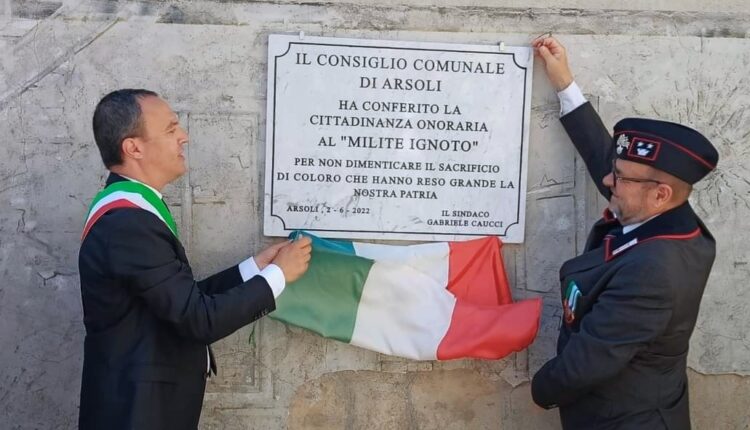 Arsoli – Il comune di Arsoli ha conferito alla milite ignoto la cittadinanza onoraria. L’iniziativa di grande spessore socio istituzionale è stata inserita nelle celebrazioni del 2 giugno. Questee parole del sindaco Gabriele Caucci.