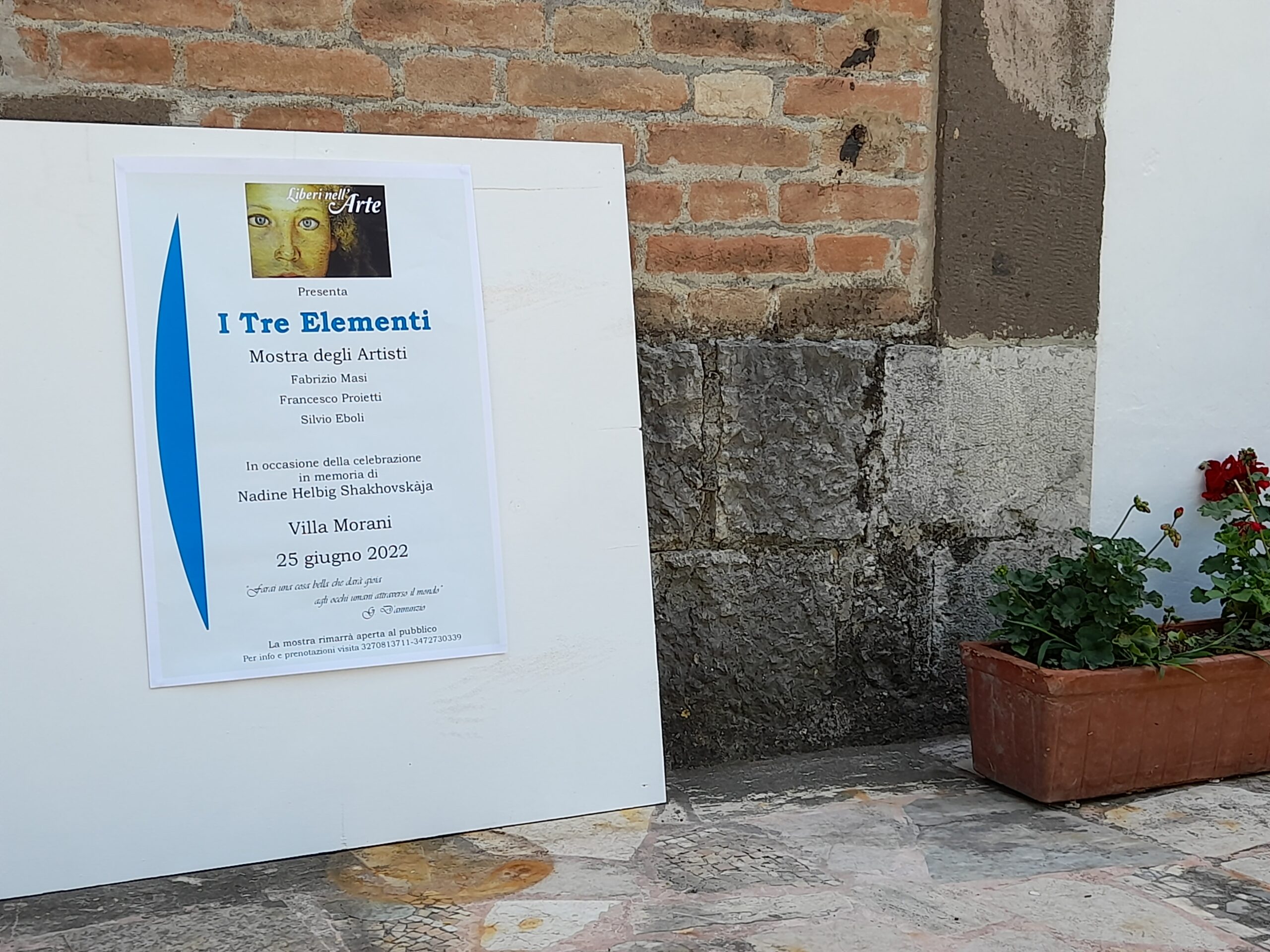 ARSOLI – E’ stata organizzata a Villa Morani il 25 giugno , in Arsoli, dall’associazione Liberi nell’Arte, la mostra artistica “I tre elementi” in occasione della celebrazione in onore di Nadine Helbig Shakhovskàja, principessa russa madre dell’artista Lili Helbig sposa del pittore Alessandro Morani.