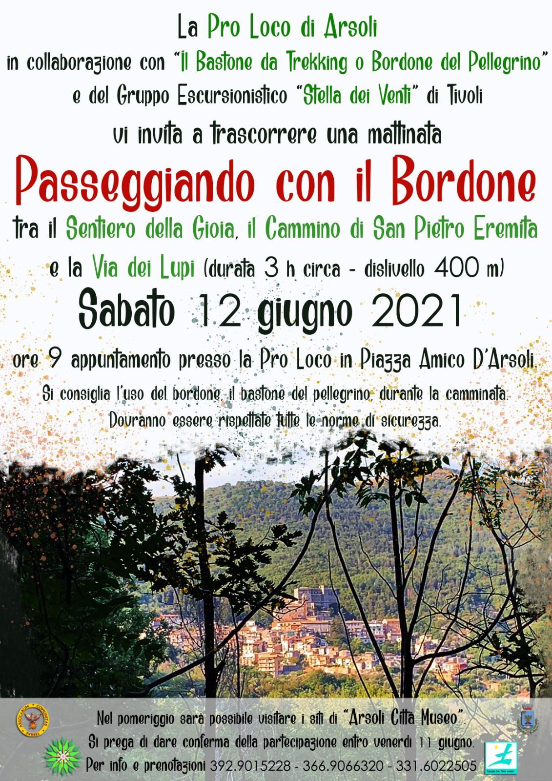 Arsoli – Una interessante iniziativa è stata organizzata dalla Pro Loco di Arsoli in collaborazione con il gruppo escursionistico stella dei venti di Tivoli. L’appuntamento è per il prossimo 12 giugno con “Passeggiando per il Bordone”. Di seguito tutte le info in locandina