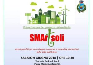 Arsoli – C’è molta attesa per un importante progetto universitario denominato “SMArtsoli”, il cui appuntamento è per Sabato 9 giugno alle ore 1.30 presso il Teatro La Fenice di Arsoli. Sarà il sindaco Gabriele Caucci ad introdurre gli interessanti lavori al quale parteciperanno altri autorevoli relatori e convenuti per spiegare il progetto che punta a sviluppare il territorio della Valle Aniene a livello universitario.